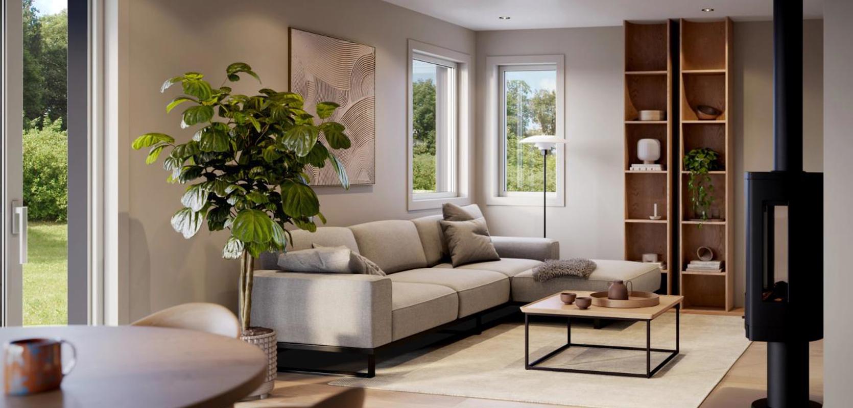 Lyst og romslig oppholdsrom