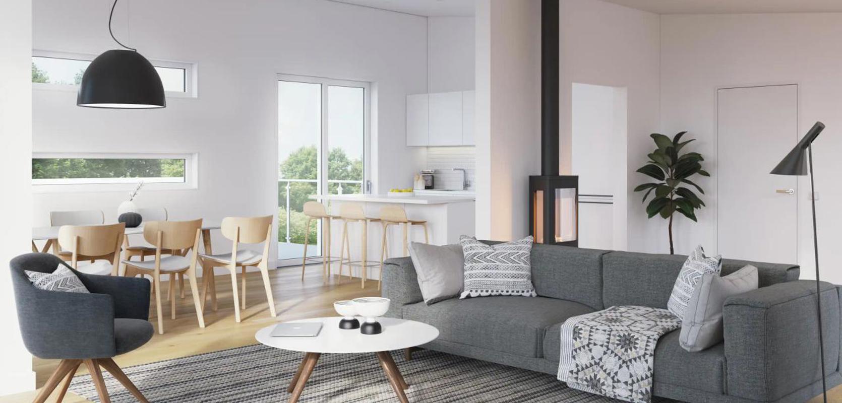 Inkludert er egen carport, tre komfortable soverom, to balkonger, en innbydende åpen stue- og kjøkkenløsning, to bad og separat vaskerom. Boligen er tilpasset flat tomt, og kan også kjedes for større feltutbygginger.