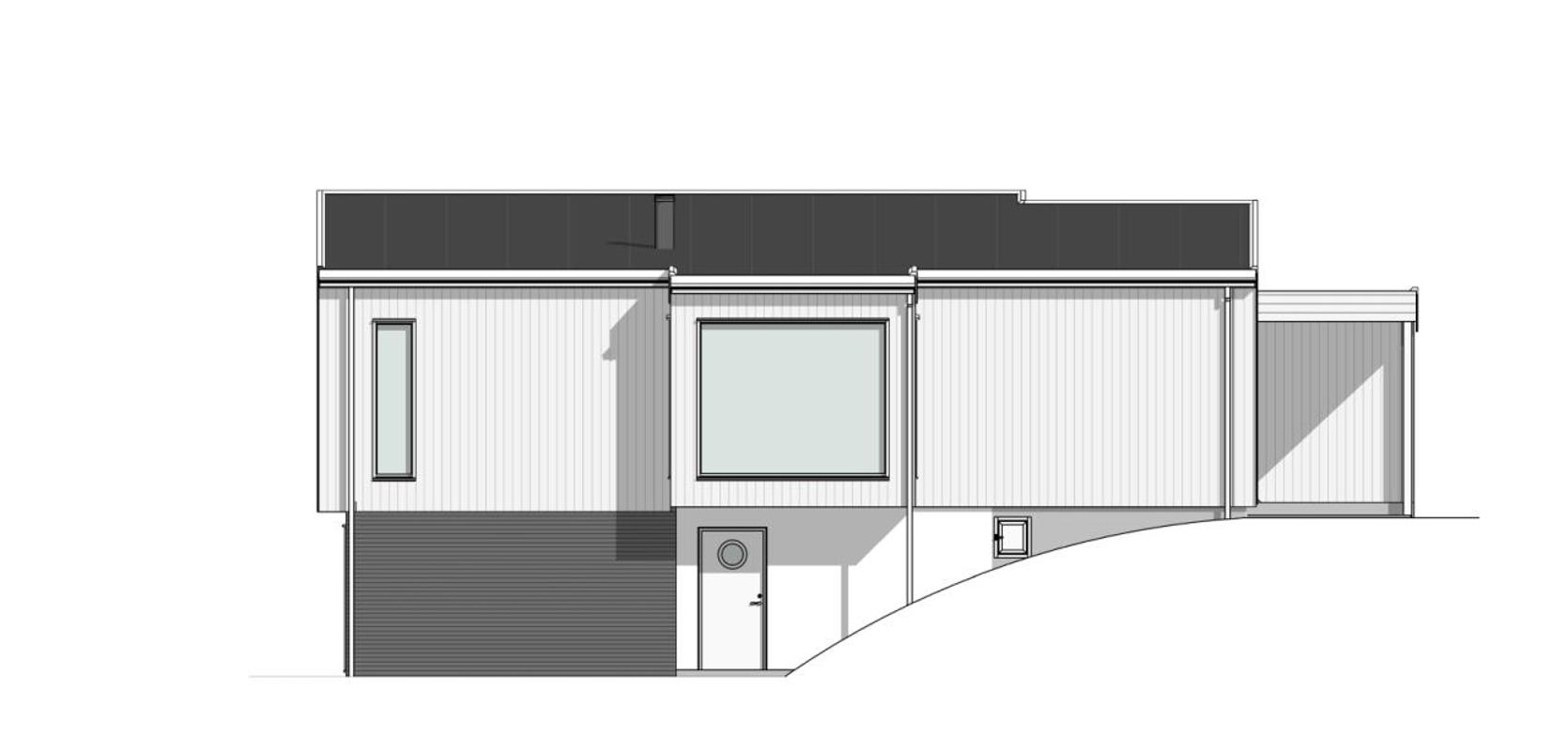 Signatur 306 er tilpasset skrå tomt, og hovedinngangen ligger på øvre plan, med kort vei til carporten. Rett ved siden av inngangen har du direkte adkomst til en utvendig sportsbod. Huset har også en stor, flott terrasse tilgjengelig fra stuen.